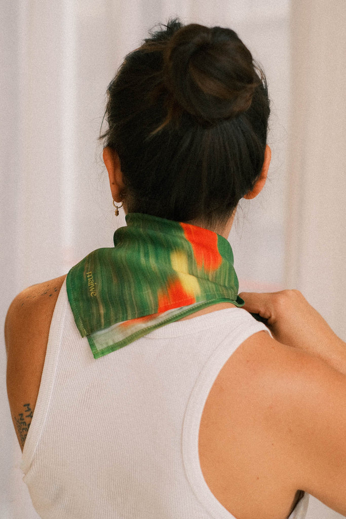 The Scarf was produced in collaboration with our dear friend Laura Cote, collection manager at Girls of Dust / Eat Dust, the Antwerp-based label that also represents Maiwe. Laura ensures that every piece in their collection is technically flawless, a true guardian of quality.